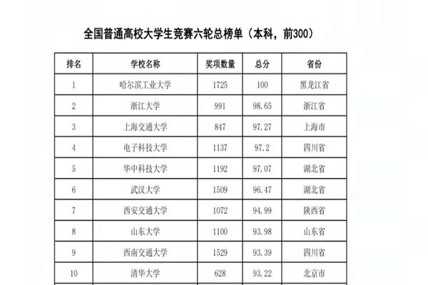 哈爾濱工業(yè)大學(xué)連續(xù)三年獲得全國普通高校大學(xué)生競賽榜單冠軍