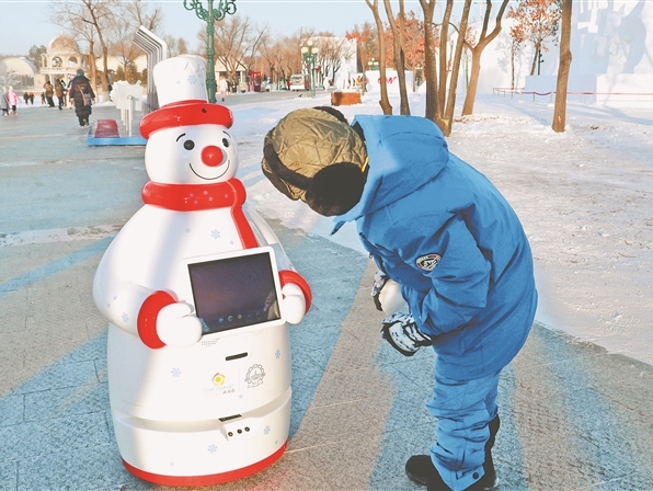 智能機器人在太陽島雪博會上崗