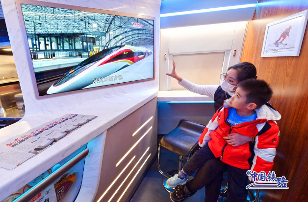 復興號智能動車組車廂內(nèi)的服務設施進行了智能化升級,進入隧道時,列車可智能控制車內(nèi)壓力,提前調(diào)節(jié)燈光、車窗顏色等。