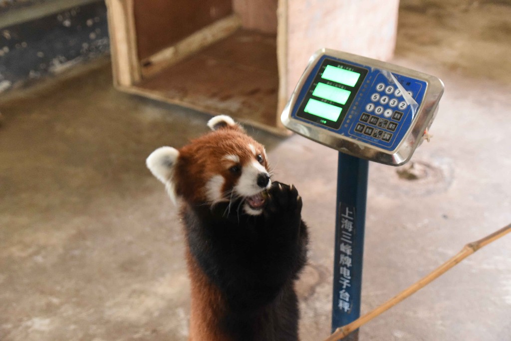 小熊貓對稱體重、量身高體長等體檢項(xiàng)目十分喜愛。因?yàn)轱曫B(yǎng)員們會用美食吸引它們走上體重秤,并在秤上直立身體量身高。小熊貓“小豆包”體檢時(shí)會展現(xiàn)出聰明又粘人的本性,抱住秤不撒爪,撒嬌賣萌很是可愛。