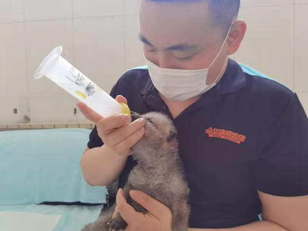 據(jù)工作人員介紹,5月上旬,哈爾濱極地公園北極狼家族新生多只北極狼寶寶。為保證母狼和新生小狼的安全,馴養(yǎng)師24小時(shí)通過監(jiān)控觀察北極狼媽媽和寶寶的情況。三天后,一只狼媽媽出現(xiàn)奶水不足、棄養(yǎng)小狼的情況。為保證狼寶寶的安全,馴養(yǎng)師決定將狼寶寶采用全人工技術(shù)飼養(yǎng),取得了成功。