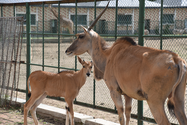 比起環(huán)尾狐猴媽媽的悉心照料,四月份在非洲草食動物散放區(qū)新出生的雄性小羚羊就很令人擔心,因為膽小的新手媽媽不會照料孩子,所以它不讓自家娃近身,不給娃吃奶。飼養(yǎng)員看到這種情況采取了人工輔助的辦法,把奶擠出來讓小羚羊吃到初乳。雖然媽媽一直躲著自己,但是小羚羊堅持要“親力親為”吃奶。飼養(yǎng)員就拿食物在前面引誘羚羊媽媽,讓它站立安穩(wěn)點,時間長一點,小羚羊慢慢靠近就可以吃到母乳啦!現在大羚羊媽媽已經完全能接受這個小家伙了,常常依偎在一起。解決了小羚羊的吃飯問題后,小家伙就開始茁壯成長,一天比一天活波可愛。
