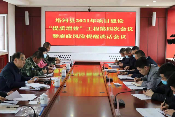 黑龍江經(jīng)濟(jì)網(wǎng)訊(王超 石佰龍 記者馬朝林)5月31日,塔河縣2021年項(xiàng)目建設(shè)“提質(zhì)增效”工程第四次會(huì)議暨廉政風(fēng)險(xiǎn)提醒談話會(huì)議在縣委四樓會(huì)議室召開,縣委書記林建軍、縣長(zhǎng)宋波出席會(huì)議并講話,縣委常委、副縣長(zhǎng)張躍科,副縣長(zhǎng)劉淑艷、鄂旭杰、劉煜及項(xiàng)目、財(cái)經(jīng)相關(guān)單位負(fù)責(zé)人參加會(huì)議。