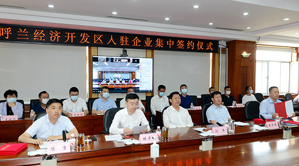 黑龍江經(jīng)濟網(wǎng)訊(白銘波 記者 王振紅)6月12日,哈爾濱市呼蘭區(qū)舉行入駐經(jīng)濟開發(fā)區(qū)企業(yè)集中網(wǎng)上簽約儀式。來自中國食品工業(yè)協(xié)會、北京鳳凰控股集團、華電能源哈三電廠、哈爾濱九洲集團股份有限公司、上海華升石墨有限公司、北京大有匯金環(huán)境科技有限公司、武漢光谷節(jié)能科技有限公司、哈爾濱市廣東潮汕商會、武漢麗島物業(yè)管理有限公司、武漢慧聯(lián)無限科技有限公司、黑龍江宸熙科技有限公司、蘇試試驗集團股份有限公司等12家企業(yè)和協(xié)會與呼蘭區(qū)政府簽訂了入駐呼蘭經(jīng)濟開發(fā)區(qū)投資合作協(xié)議,簽約額達80.6億元。
