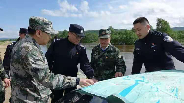 大興安嶺林業(yè)集團(tuán)公司黨委書記于輝與塔河縣局領(lǐng)導(dǎo)利用無人機(jī)查看塔河汛情