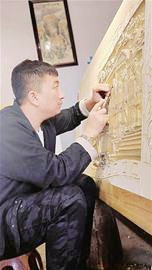1986年出生的李寶峰,是黑龍江省非物質(zhì)文化遺產(chǎn)保護(hù)項目——北安木雕第四代傳承人,他的作品多次獲得省內(nèi)各類木雕作品大賽獎項。出生于雕刻世家的他,從小和父親學(xué)習(xí)木雕技藝。