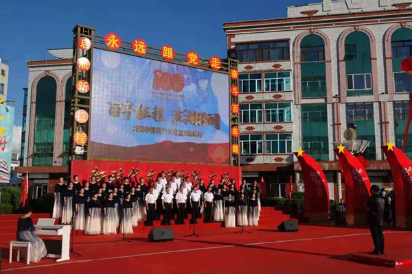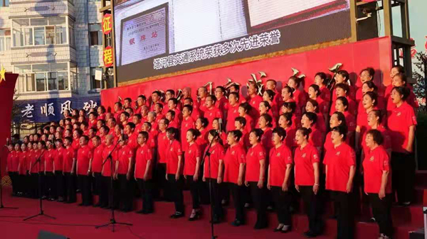 在歌聲中重溫百年歷程,追尋紅色記憶;在歌聲中砥礪無悔初心,汲取奮進力量。塔河縣廣大職工群眾在縣新時代文明實踐廣場以大合唱的方式縱情高歌,用滿腔的熱忱唱出了對黨的熱愛,對偉大祖國的贊美。由塔河縣森林之聲合唱團表演的曲目《祖國頌》《我愛你中國》拉開了演出的序幕,瞬間就調(diào)動了人們的情緒,激發(fā)了人們的愛國豪情。《不忘初心》《走向復(fù)興》《強軍戰(zhàn)歌》《忠誠于黨》等一首首經(jīng)典曲目表達了塔河兒女對黨的忠誠與熱愛,展現(xiàn)了塔河人奮發(fā)有為、積極向上的良好精神風(fēng)貌。