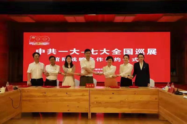 啟動儀式后,為加強(qiáng)館際交流,促進(jìn)共同發(fā)展,更好地實(shí)現(xiàn)資源共享,還舉行了中共一大至七大全國巡展館際戰(zhàn)略合作簽約儀式。各展館在理論研討、主題教育、隊(duì)伍培養(yǎng)、網(wǎng)絡(luò)宣傳、陳列展覽、信息交流等方面將開展館際交流活動,進(jìn)一步互聯(lián)、互補(bǔ)、互動,推動多方工作聯(lián)動開展。
