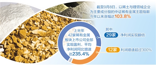 近幾個月,A股稀有金屬板塊呈現(xiàn)上漲行情。截至9月8日,以稀土與鋰領域企業(yè)為主要成分股的中證稀有金屬主題指數(shù)今年以來漲幅已達103.8%。