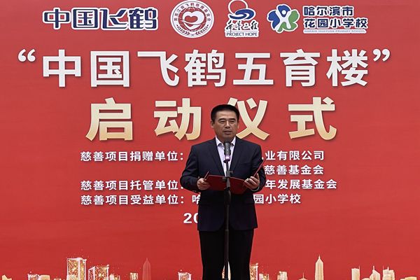 飛鶴乳業(yè)黨委書記、飛鶴慈善基金會(huì)理事長朱天龍在啟動(dòng)儀式上說,在中秋國慶即將到來之際,我們滿懷喜悅的心情,在百年名校哈爾濱市花園小學(xué)校舉行“中國飛鶴五育樓”公益慈善助教項(xiàng)目啟動(dòng)儀式,這是飛鶴乳業(yè)履行社會(huì)責(zé)任、情系教育事業(yè)的又一項(xiàng)助教工程。在黑龍江省貫徹落實(shí)黨中央“雙減”政策,深入推進(jìn)五育并舉,促進(jìn)學(xué)生德智體美勞全面發(fā)展的重要時(shí)期。飛鶴向哈爾濱市花園小學(xué)捐贈(zèng)625萬元,用于花園小學(xué)“五育樓”項(xiàng)目改造,這是一項(xiàng)利在當(dāng)代,功在千秋的公益慈善助教項(xiàng)目,旨在更好地優(yōu)化我省基礎(chǔ)教育教師學(xué)習(xí)培訓(xùn)環(huán)境,為花園小學(xué)教學(xué)提供更好的辦學(xué)條件,也是助力黑龍江省基礎(chǔ)教育的改革。省教育廳副廳長姜同河、團(tuán)省委副書記張濤對飛鶴乳業(yè)的慈善助教善舉給予充分的肯定和贊許?;▓@小學(xué)校長曹永鳴代表學(xué)校的孩子們向飛鶴乳業(yè)的慈善捐助表達(dá)深深的謝意!