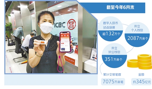 數(shù)據(jù)顯示,截至9月10日,工行北京分行試點(diǎn)的數(shù)字人民幣應(yīng)用場景達(dá)8萬多個,集中在與社會民生緊密相關(guān)的交通出行、餐飲住宿、購物消費(fèi)、旅游觀光、醫(yī)療衛(wèi)生、通信服務(wù)、票務(wù)娛樂7大類場景。中國人民銀行近期發(fā)布的《中國數(shù)字人民幣的研發(fā)進(jìn)展》白皮書顯示,截至今年6月末,數(shù)字人民幣試點(diǎn)場景已超132萬個,開立個人錢包2087萬余個、對公錢包351萬余個,累計交易筆數(shù)7075萬余筆、金額約345億元。