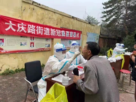 感人的事跡還有很多很多,醫(yī)院二十六病區(qū)護士孫立會,是一名今年年底就要退休的高年資護士,一直堅守在臨床一線,當聽到需要下社區(qū)支援采集核酸,積極報名主動提出上夜班崗,在晚上打車前往社區(qū)替換白班同事時,出租車師傅聽說是去給市民采集核酸,下車時堅決拒收車費;護理部護士長王爽也將年邁生病的母親托付給別人照看,全身心的投入到了核酸采集工作中;由于人手緊張,醫(yī)院行政后勤工作人員也都積極加入到了核酸采集工作當中,短短幾天共派出近50名有醫(yī)護資質的機關干部前往社區(qū)為群眾采集核酸。