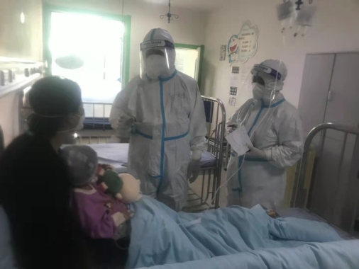 9月29日,科主任邸順祥和護(hù)士長(zhǎng)閆秀彬共同進(jìn)入醫(yī)學(xué)留觀病區(qū)進(jìn)行日常查房。查房進(jìn)行到中午發(fā)熱門診迎來了一位特殊患兒,這是一例確診病例的第一密切接觸者,家屬均被隔離,由于突發(fā)疾病由集中隔離點(diǎn)的醫(yī)護(hù)人員乘專門車輛護(hù)送至發(fā)熱門診。邸順祥主任坐鎮(zhèn)指揮,閆秀彬護(hù)士長(zhǎng)配合消毒,等待最終結(jié)果。當(dāng)患兒核酸檢測(cè)結(jié)果回報(bào)陰性,除外新冠病毒感染,經(jīng)由集中隔離點(diǎn)人員按規(guī)定接回時(shí),醫(yī)護(hù)人員們?cè)卺t(yī)學(xué)留觀區(qū)已工作了5小時(shí)。