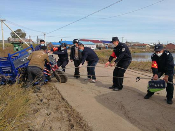巴彥縣出現(xiàn)疫情后,哈爾濱市公安局航運分局副局長井立軍帶領41名來自航運分局、地鐵分局、禁毒支隊的戰(zhàn)友們,在巴彥農(nóng)村疫情災區(qū)走鄉(xiāng)鎮(zhèn)進村屯、查卡點看秋收,用頑強的意志、過硬的膽識,漂亮地打贏了一場巴彥農(nóng)村疫情防控阻擊戰(zhàn)。截至目前,哈爾濱市公安局駐巴彥農(nóng)村防疫工作組共協(xié)助維護核酸檢測點秩序3028處、檢查村屯卡點2015處、整改存在管理問題村屯卡點103處、整改存在安全隱患居家隔離點437戶,勸阻私自出門秋收等人員862人,監(jiān)督處置有害垃圾、病死牲畜等事件33起,為全面阻斷巴彥農(nóng)村疫情蔓延奠定了堅實基礎。