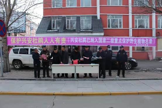 會(huì)后,所有與會(huì)人員參加了由森林資源管理科舉辦的“保護(hù)野生興安杜鵑人人有責(zé)”宣傳活動(dòng),對快遞公司、山產(chǎn)品店、檢查站、配貨站、市場及過往車輛進(jìn)行宣傳,并呼吁經(jīng)營業(yè)主參與到保護(hù)野生興安杜鵑行動(dòng)中來,不收購、不運(yùn)輸、不銷售野生興安杜鵑,堅(jiān)決把牢物流運(yùn)輸關(guān)口。