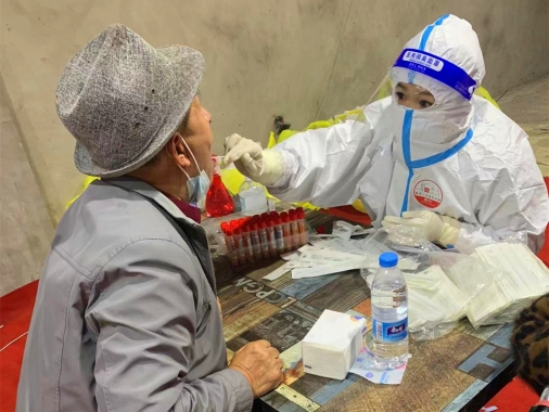 10月30日下午17時,畢贏接到單位領(lǐng)導(dǎo)的通知,準(zhǔn)備好支援社區(qū)核酸采集,有可能今晚22點開始,有可能明早8點開始。就這樣,畢贏趕緊通知親戚朋友婚禮暫時取消,馬上要去社區(qū)支援。10月31日早8點,由省醫(yī)院吳丹紅護(hù)士長帶隊,畢贏一行40名護(hù)士下沉到了新香坊鎮(zhèn)社區(qū)為那里的居民進(jìn)行核酸采集支援。就這樣,婚紗面前畢贏毅然決然地選擇了防護(hù)服,和她的戰(zhàn)友們并肩奔赴社區(qū)支援核酸采集,因為她知道疫情過后的婚禮才會更有意義。