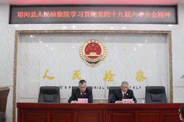 黑龍江經(jīng)濟網(wǎng)訊(姜曼菲 記者馬朝林)11月16日,塔河縣人民檢察院召開全院干警大會,傳達學(xué)習(xí)貫徹黨的十九屆六中全會精神,認真落實大興安嶺檢察分院黨組理論學(xué)習(xí)中心組2021年第十一次(擴大)會議精神,塔河縣人民檢察院黨組書記、代檢察長王小虎出席會議并講話,院黨組成員、副檢察長李蘭成主持會議。