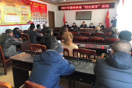 圖為新林林場(chǎng)班子成員為職工發(fā)放陽光獎(jiǎng)學(xué)金(楊光 攝)