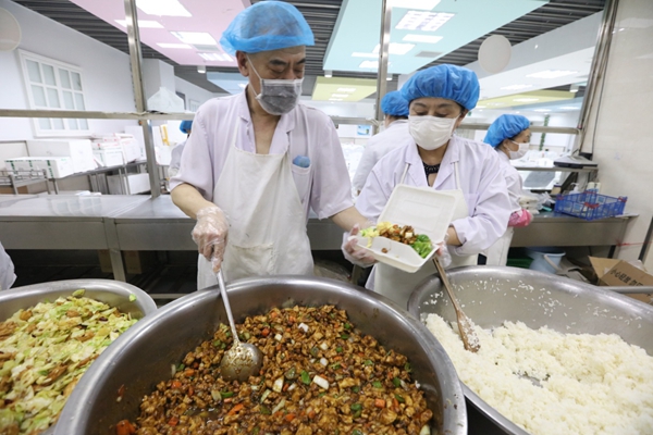 消化內科16個月大的患兒浩浩是過敏體質,因發(fā)熱、腹瀉、進食后嘔吐住院治療,這個孩子既往過敏原檢查對大米、西紅柿、雞蛋等多種食物過敏,所以食堂針對這個孩子飲食單獨配餐,主食以小麥類饅頭等為主,蔬菜以在家經(jīng)常食用的菜類制作,保證患兒的營養(yǎng)進食。據(jù)了解,哈爾濱醫(yī)科大學附屬哈爾濱兒童醫(yī)院全力保障300多名住院患兒以及陪護家屬的一日三餐飲食。每天患兒家長通過住院患者訂餐系統(tǒng)平臺網(wǎng)上自助訂餐,食堂配餐送到病房。鞠樹斌介紹,食堂每天負責醫(yī)院職工和患者及陪護家屬800多人次的一日三餐,在崗的25名工作人員,每天從3時開始準備早餐,8時制作午餐,14時又開始做晚餐。工作雖然忙碌,但卻覺得自己的努力能讓患者們在住院期間吃得安心、舒心,又覺得自己價值感滿滿。