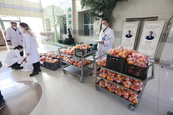黑龍江經(jīng)濟網(wǎng)訊(魏然 李麗 祝東 梁新立) 12月7日,在哈爾濱醫(yī)科大學附屬哈爾濱兒童醫(yī)院,30箱總重700多斤的蘋果和桔子,被一箱箱運進住院處病房,由行政后勤人員送到每個病房患兒家庭手中,讓在院的孩子們補充營養(yǎng)。