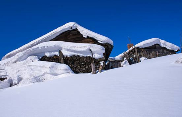 這里的降雪期長達半年,每年累積降雪厚度達2米,獨特的小氣候造就了隨物賦形的雪檐,千姿百態(tài)的雪簾,變化多端的雪蘑菇,只有到了這里,才能領略到山舞銀蛇,原馳蠟象,欲與天公試比高的冰雪奇觀。積雪在風力的作用下其狀好似奔馬、臥兔、神龜、巨蘑……千姿百態(tài),仿佛是天上的朵朵白云飄落。 雪村人在自家掛起大紅燈籠,潔白如玉的白雪在大紅燈籠的映襯下,溫柔喜慶,幻化無窮。