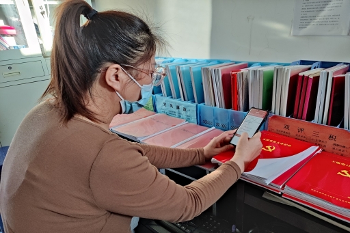 職工在礦自辦“霍拉盆先鋒 智慧黨建平臺”進(jìn)行黨的十九屆六中全會精神知識測試(李云田 攝)