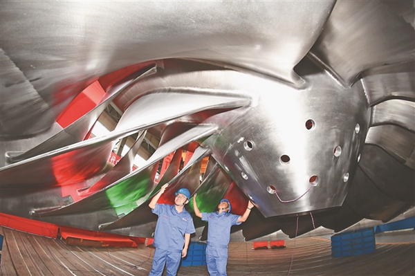 哈電集團(tuán)研制的世界首臺長短葉片1000MW白鶴灘精品轉(zhuǎn)輪。圖片由受訪單位提供