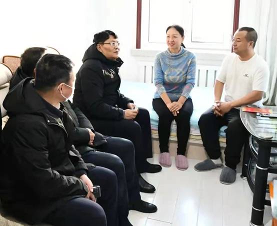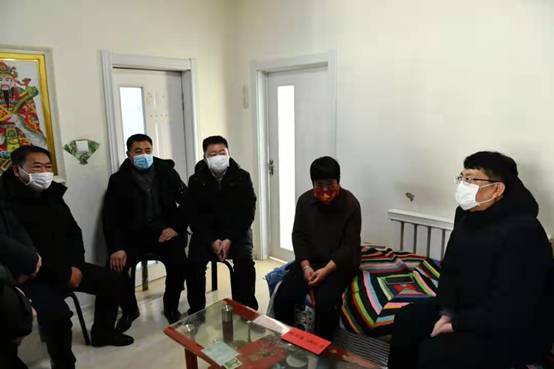 新林林業(yè)局黨委副書記、局長(zhǎng)張鶴松一行在困難職工劉玉峰家中走訪慰問(wèn)(趙文財(cái) 攝)