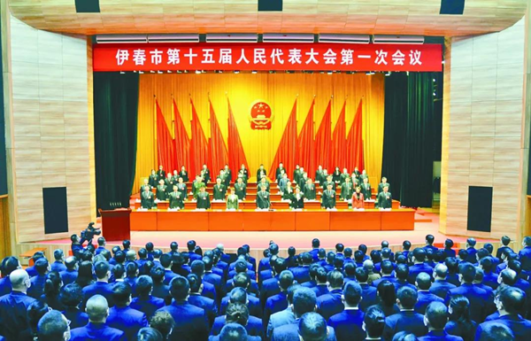 伊春市第十五屆人民代表大會(huì)第一次會(huì)議閉幕式現(xiàn)場。胡錫韋 攝