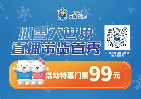 1月22日,哈爾濱冰雪大世界將啟動直播帶貨首秀。1月22日——24日連續(xù)3天,每天17:00——21:00相約哈爾濱冰雪大世界官方抖音直播間,搶鉅惠門票,抽取超多幸運大獎。