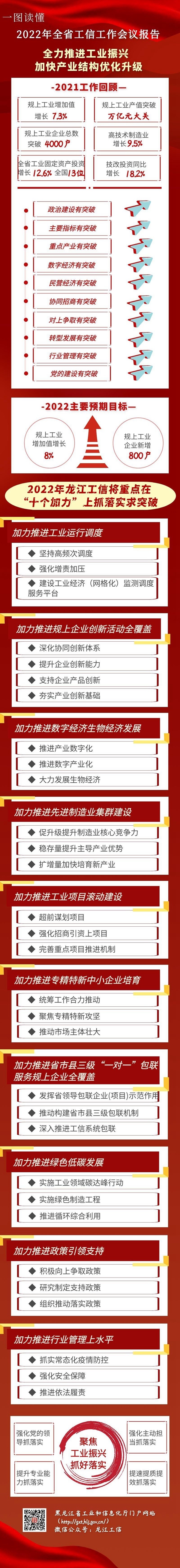 會(huì)議強(qiáng)調(diào),新的一年,要堅(jiān)持以習(xí)近平新時(shí)代中國(guó)特色社會(huì)主義思想為指導(dǎo),全面貫徹落實(shí)黨的十九大和十九屆歷次全會(huì)精神,深入貫徹落實(shí)習(xí)近平總書記重要講話重要指示批示精神,按照黨中央“提升制造業(yè)核心競(jìng)爭(zhēng)力”和省委“要把振興工業(yè)擺上突出位置”的部署要求,完整、準(zhǔn)確、全面貫徹新發(fā)展理念,服務(wù)和融入構(gòu)建新發(fā)展格局,推動(dòng)高質(zhì)量發(fā)展,堅(jiān)持思想思路破題、科學(xué)規(guī)劃引領(lǐng)、配套政策跟進(jìn)、聚焦優(yōu)勢(shì)揚(yáng)長(zhǎng)、激發(fā)活力補(bǔ)短,“穩(wěn)”字當(dāng)頭、“進(jìn)”字發(fā)力,全力實(shí)施工業(yè)振興計(jì)劃,以發(fā)展壯大數(shù)字經(jīng)濟(jì)、生物經(jīng)濟(jì)等戰(zhàn)略性新興產(chǎn)業(yè)為引領(lǐng),“十個(gè)加力”穩(wěn)存量擴(kuò)增量,鞏固實(shí)體經(jīng)濟(jì)根基,做強(qiáng)先進(jìn)制造業(yè),做優(yōu)現(xiàn)代產(chǎn)業(yè)體系,推動(dòng)工業(yè)經(jīng)濟(jì)實(shí)現(xiàn)質(zhì)的穩(wěn)步提升和量的合理增長(zhǎng),加快龍江工業(yè)再創(chuàng)新輝煌,以優(yōu)異成績(jī)迎接黨的二十大勝利召開。