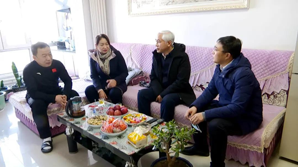 在高亭宇家中,周英東與高亭宇的父親親切交談,詳細(xì)詢問(wèn)了高亭宇的成長(zhǎng)歷程、家中的生活、平時(shí)訓(xùn)練、學(xué)業(yè)等方面的情況并為高亭宇的父親送上了慰問(wèn)品和節(jié)日的美好祝福。同時(shí)通過(guò)家人向正在參賽的高亭宇加油鼓勁,希望高亭宇全力參賽,在冬奧會(huì)賽場(chǎng)上取得優(yōu)異成績(jī),為國(guó)爭(zhēng)光、為家鄉(xiāng)添彩。