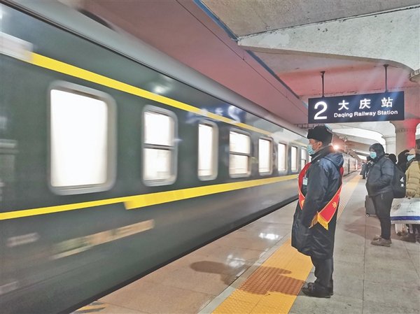 由于節(jié)后返程客流劇增,大慶地區(qū)去往海拉爾的4趟旅客列車(chē)無(wú)法滿(mǎn)足企業(yè)返崗需要,為幫助企業(yè)解決油田職工返崗復(fù)工困難,哈爾濱局集團(tuán)公司全力協(xié)助大慶油田有限責(zé)任公司辦理職工出行事宜,為企業(yè)量身定制了油田職工返崗復(fù)工專(zhuān)列開(kāi)行方案。在春運(yùn)期間運(yùn)力緊張的情況下,專(zhuān)門(mén)調(diào)集10輛空調(diào)車(chē)體,全面進(jìn)行設(shè)備檢修維護(hù)和車(chē)輛消毒作業(yè),滿(mǎn)足石油工人出行需求。負(fù)責(zé)運(yùn)輸組織工作的大慶站為油田職工提供專(zhuān)項(xiàng)聯(lián)絡(luò)、專(zhuān)區(qū)候車(chē)、專(zhuān)人引導(dǎo)服務(wù),及時(shí)辦理團(tuán)體購(gòu)票,增開(kāi)進(jìn)站通道,提前做好候車(chē)區(qū)域通風(fēng)、消毒和保潔工作,配合地方政府嚴(yán)格落實(shí)進(jìn)站掃碼、測(cè)溫等防疫措施,在驗(yàn)票進(jìn)站、安檢、候車(chē)、乘車(chē)等環(huán)節(jié)設(shè)置人員進(jìn)行引導(dǎo)。并利用小喇叭、電子顯示屏、車(chē)站廣播等載體,循環(huán)播放疫情防控措施、登乘列車(chē)注意事項(xiàng),引導(dǎo)務(wù)工人員分散候車(chē)就座。鐵路部門(mén)精心抽調(diào)服務(wù)經(jīng)驗(yàn)豐富的哈爾濱客運(yùn)段北京車(chē)隊(duì)列車(chē)工作人員負(fù)責(zé)乘務(wù)工作,提前做好列車(chē)通風(fēng)消毒和防疫保潔工作,為乘客準(zhǔn)備了一次性醫(yī)用口罩和消毒洗手液,全力營(yíng)造健康安全的出行環(huán)境。