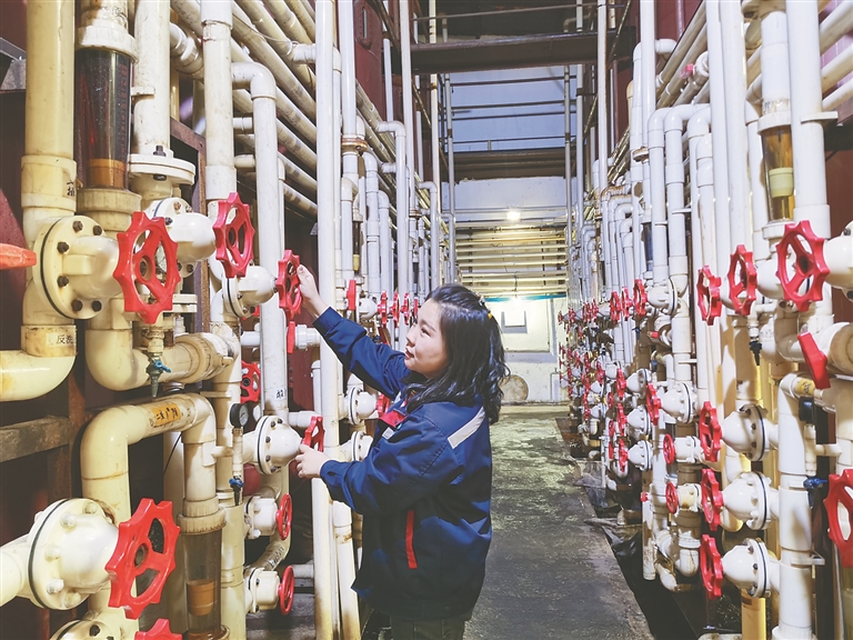 工人對糖液進行凈化提純。