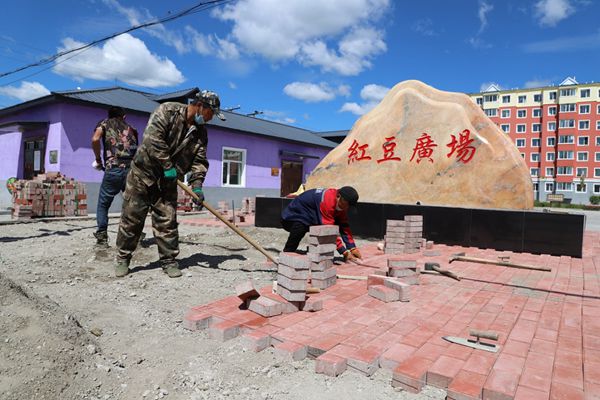 阿木爾林業(yè)局建設(shè)者改造紅豆廣場(王力 攝)