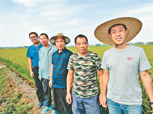 孫世臣等4位博士科技特派員為樺川縣創(chuàng)業(yè)鄉(xiāng)中山村引進高產(chǎn)龍稻田間指導。