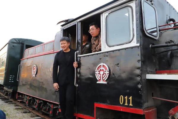 張國(guó)強(qiáng)在家鄉(xiāng)采風(fēng)時(shí),來到龍江森工集團(tuán)樺南林業(yè)局有限公司,先后參觀了蒸汽火車展覽館、森工大院、鍛造車間,并乘坐百年森林蒸汽小火車感受林區(qū)特色風(fēng)光。
