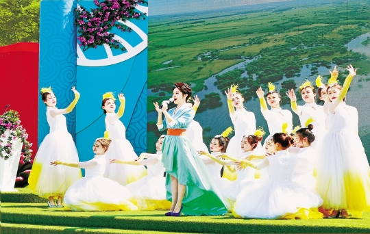 啟動儀式上的歌舞演出《綠色畫卷》(劉博/攝)