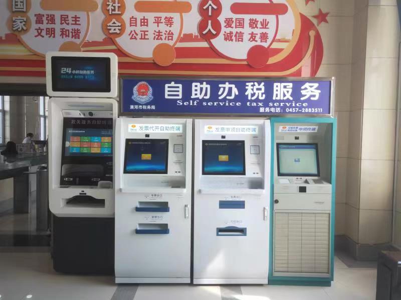 漠河市稅務局在政務服務大廳配置了3臺自助辦稅終端,分別是發(fā)票代開自助終端、發(fā)票申領(lǐng)自助終端和定額發(fā)票申領(lǐng)終端。