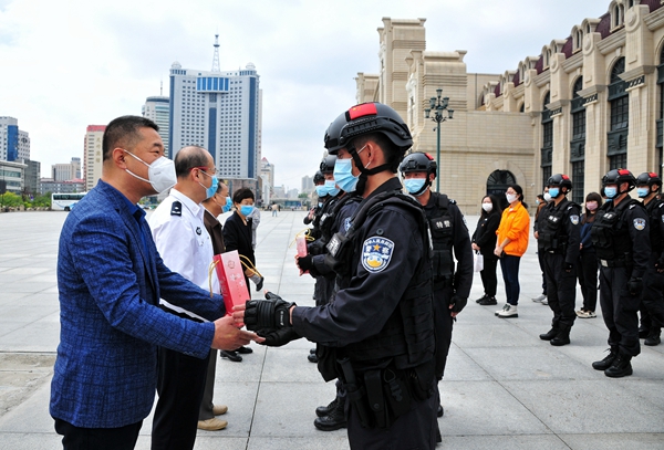 公益活動首批慰問對象是剛從抗疫一線歸來的哈爾濱市公安局巡特警支隊隊員。本次疫情期間,他們馳援五常市拉林鎮(zhèn)、哈爾濱市平房區(qū)和賓縣,先后核查車輛3700余臺,幫助群眾1100多人,為群眾配送餐食10萬余份、飲用水20余萬瓶、防疫物資9000余件,用血肉身軀筑起了抗擊疫情的鋼鐵長城,詮釋了“疫情當前,特警在先”的使命擔當。“感謝黑龍江日報報業(yè)集團和愛心企業(yè)送來健康產(chǎn)品。今后我們會一如繼往做好本職工作,哪里需要哪里上,當好人民的忠誠衛(wèi)士。”接過“小綠君”,哈爾濱市公安局巡特警支隊特警一大隊二中隊教導員劉甲洲一臉幸福。