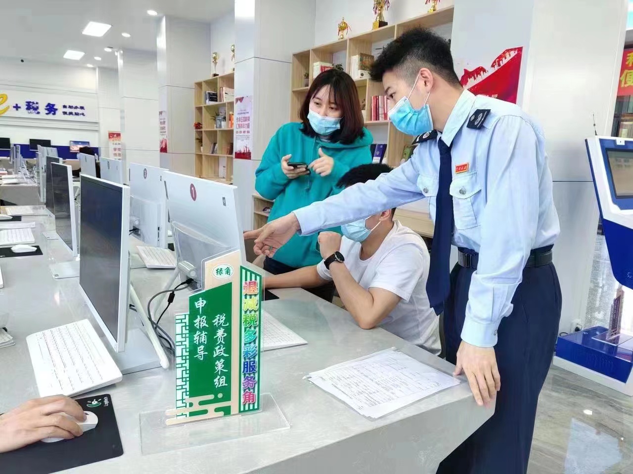 服務(wù)角暖人心,“政策直達(dá)”快起來(lái)。為實(shí)現(xiàn)新的組合式稅費(fèi)支持政策直達(dá)快享,該局在辦稅服務(wù)廳開設(shè)退稅減稅功能服務(wù)專區(qū),在醒目位置設(shè)置“退稅減稅多彩服務(wù)角”“先鋒云坐席”。退稅減稅多彩服務(wù)角,細(xì)化分為六個(gè)功能服務(wù)角: 政策宣傳紅角、難點(diǎn)攻堅(jiān)藍(lán)角、申報(bào)輔導(dǎo)綠角、退稅審批金角、暖心服務(wù)橙角和意見征集紫角,由多彩黨員先鋒隊(duì)中的各部門、各支部業(yè)務(wù)骨干(紅、藍(lán)、綠、金、橙、紫先鋒)輪流進(jìn)駐各個(gè)服務(wù)角,分別開展專項(xiàng)退減稅服務(wù),做到按企施策到位、優(yōu)惠政策直達(dá)到位、精簡(jiǎn)流程服務(wù)到位,“真金白銀”快享到位?!跋蠕h云坐席”由辦稅服務(wù)廳2個(gè)黨員先鋒崗組成,專職負(fù)責(zé)線上退稅減稅服務(wù)。退稅減稅功能服務(wù)專區(qū)的建立,既做到了內(nèi)部協(xié)同,又兼顧了內(nèi)外銜接;既做到了“在大廳專區(qū)有專人快速辦理退稅減稅專事”,又打通了面向社會(huì)的服務(wù)通道。