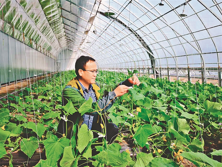 設(shè)施農(nóng)業(yè)大棚內(nèi)一片生機(jī)勃勃。尹雪 張朝釗攝