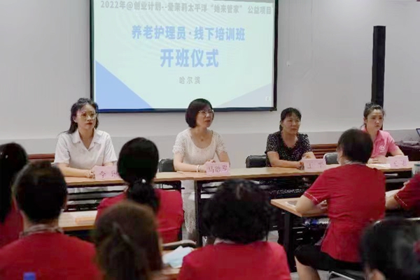 黑龍江經濟網(wǎng)訊(王巖)為進一步培養(yǎng)養(yǎng)老護老專業(yè)人才,提升養(yǎng)老護理員隊伍職業(yè)化、專業(yè)化水平,7月26日,由中國婦女發(fā)展基金會與愛茉莉太平洋發(fā)起,哈爾濱市婦聯(lián)指導,黑龍江龍妹職業(yè)技能培訓學校承辦的“愛茉莉太平洋‘她來管家’女性賦能公益項目”養(yǎng)老護理員線下培訓班正式開班,來自各區(qū)縣社區(qū)的34名學員參加了開班儀式。