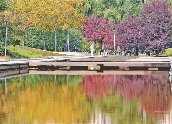 13日,哈爾濱市道里區(qū)景江東路附近的綠化帶里,一些樹葉開始變色,紅的、黃的、綠的,構成了一幅美麗的圖畫,成為街頭一道風景,吸引人們駐足觀看、拍照。哈爾濱市秋色漸顯,為整座城市增添了更多的魅力。
