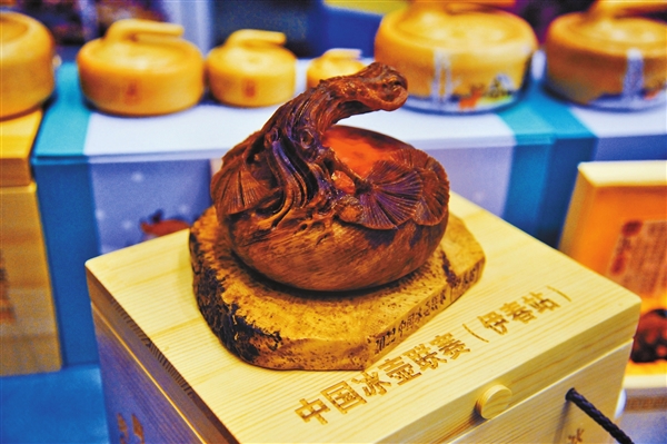 此次,美江木藝有限責(zé)任公司共展出了100余件產(chǎn)品,其中,最引人注目的瑞虎冰壺,由美江木藝公司為2022中國(guó)冰壺聯(lián)賽(伊春站)主題創(chuàng)作,最大直徑1.8米,總高度1.6米。主體壺身采用2022個(gè)小興安嶺山核桃做原料,壺蓋部分采用小興安嶺珍貴樹(shù)種紅松。作品構(gòu)思巧妙、用材獨(dú)特,既契合本次冰壺聯(lián)賽內(nèi)容,又充分體現(xiàn)了林都伊春、冰壺之鄉(xiāng)的地域特征。構(gòu)成壺身的2022個(gè)山核桃,寓意著2022年河山錦繡的小興安嶺,構(gòu)成壺蓋的興安紅松,蘊(yùn)含著華夏文明“鴻運(yùn)當(dāng)頭”的美好期許。此藝術(shù)品既體現(xiàn)伊春的森林文化藝術(shù)與競(jìng)技體育相融合的發(fā)展理念,也展現(xiàn)了伊春的冰雪經(jīng)濟(jì)和木藝創(chuàng)意設(shè)計(jì)產(chǎn)業(yè)的發(fā)展成果。