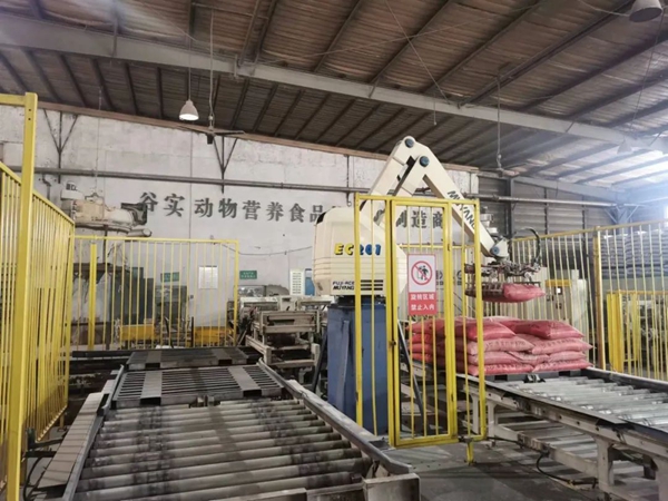 谷實生物集團(tuán)車間里的碼垛機(jī)器人。