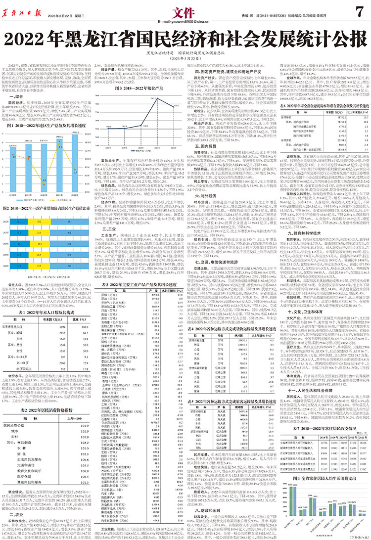 黑龍江省統(tǒng)計局 國家統(tǒng)計局黑龍江調查總隊 (2023年3月22日)