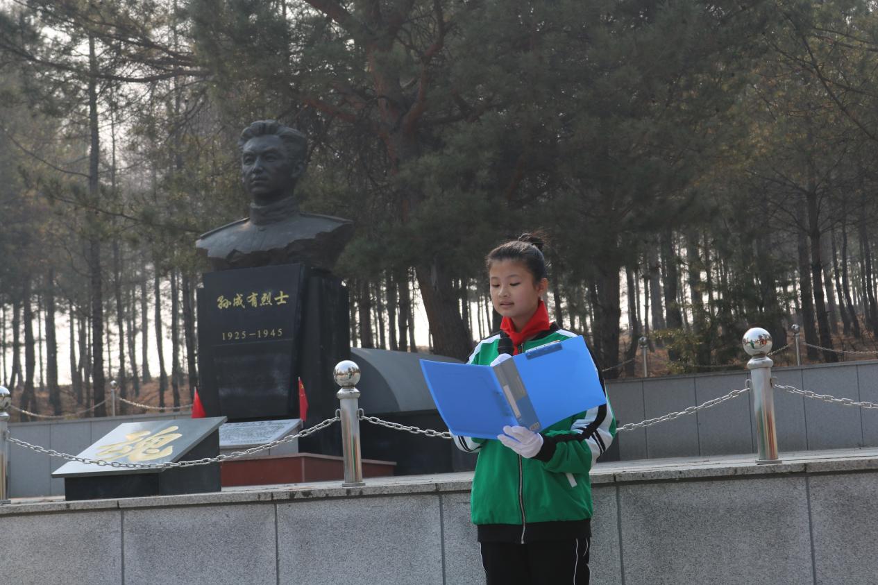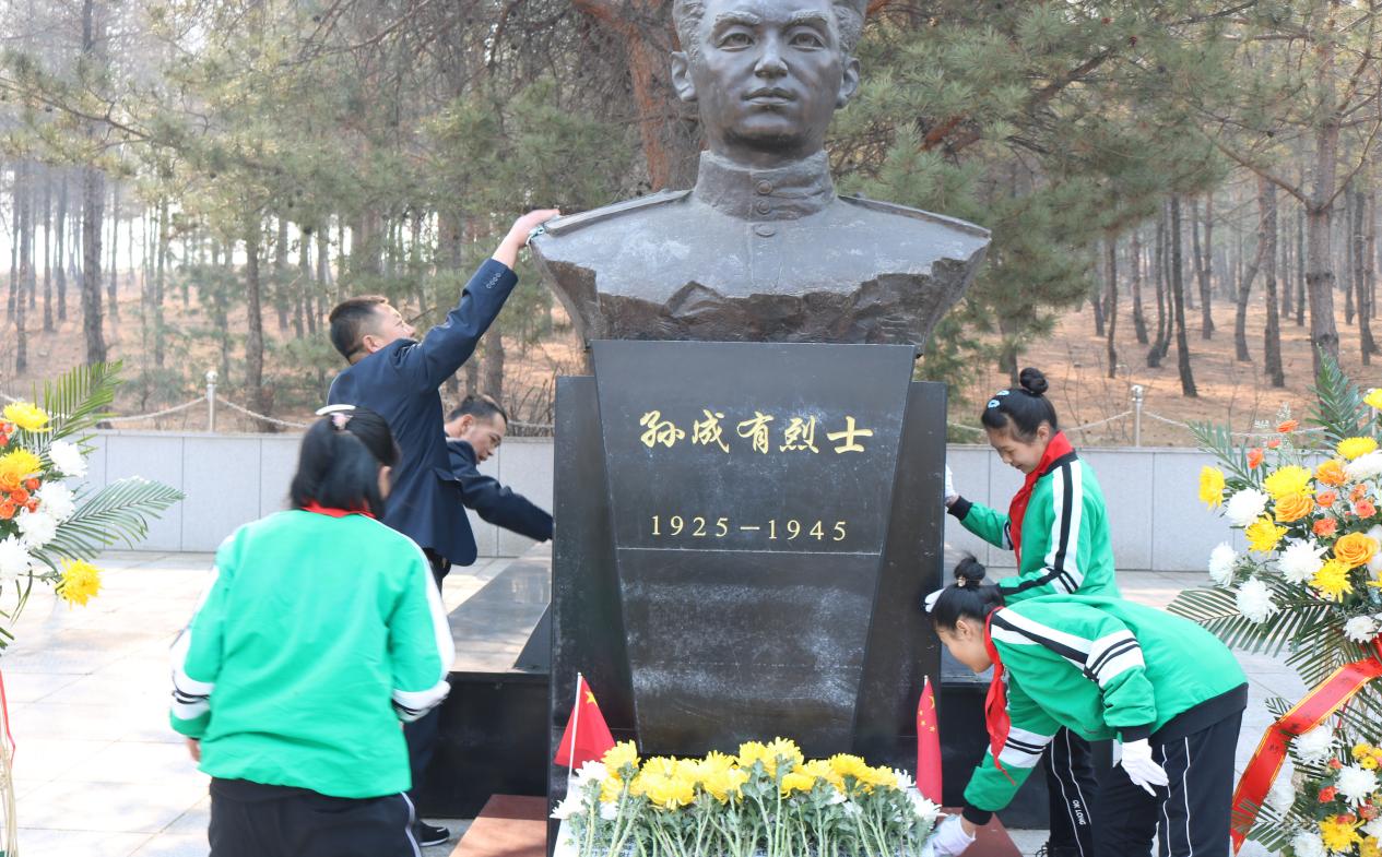 上午九時整,參加祭掃人員在孫成有烈士墓前列隊。全體人員肅立、脫帽,奏唱《中華人民共和國國歌》,溫春中心校學生代表獻唱《中國少年先鋒隊隊歌》,并介紹孫成有烈士光榮事跡。隨后,全體人員向烈士垂首默哀,表達對革命先烈的哀思及敬仰。默哀畢,區(qū)人武部代表和溫春中心校少先隊員向烈士紀念碑敬獻花籃,參加祭掃儀式的全體人員依次瞻仰烈士紀念碑。