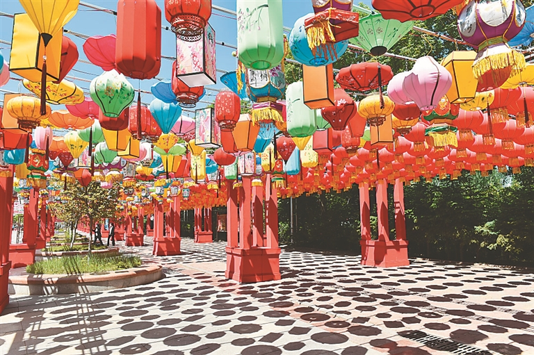 本次活動(dòng)為期5天,還設(shè)有眾多特色主題展示:上千把倒懸油紙傘、1800盞紅燈籠、700余個(gè)彩燈、12盞宮燈、7座仿古涼亭……為大家?guī)硪粓鲆曈X盛宴。