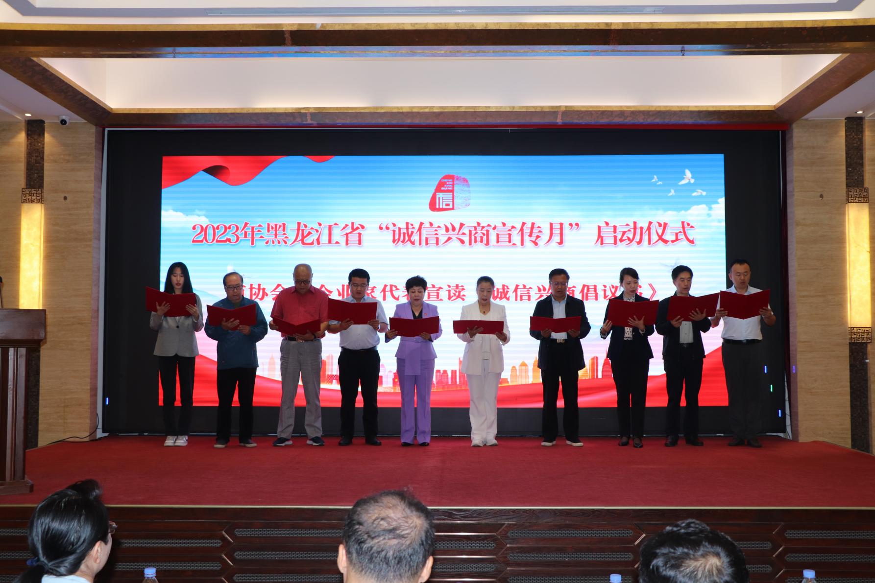 省委宣傳部、省直機(jī)關(guān)工委、省商務(wù)廳、省交通運(yùn)輸廳、省文旅廳、省國資委、省營商環(huán)境建設(shè)監(jiān)督局、哈爾濱海關(guān)、省稅務(wù)局、省市場(chǎng)監(jiān)督管理局、省外匯管理局、省高級(jí)人民法院、省工商聯(lián)、哈爾濱商業(yè)大學(xué)、省廣播電視臺(tái)等相關(guān)單位人員,省誠信建設(shè)促進(jìn)會(huì)、省社會(huì)保障行業(yè)協(xié)會(huì)、省內(nèi)行業(yè)商協(xié)會(huì)負(fù)責(zé)人,優(yōu)秀企業(yè)代表及媒體代表等100余人參加了啟動(dòng)儀式。